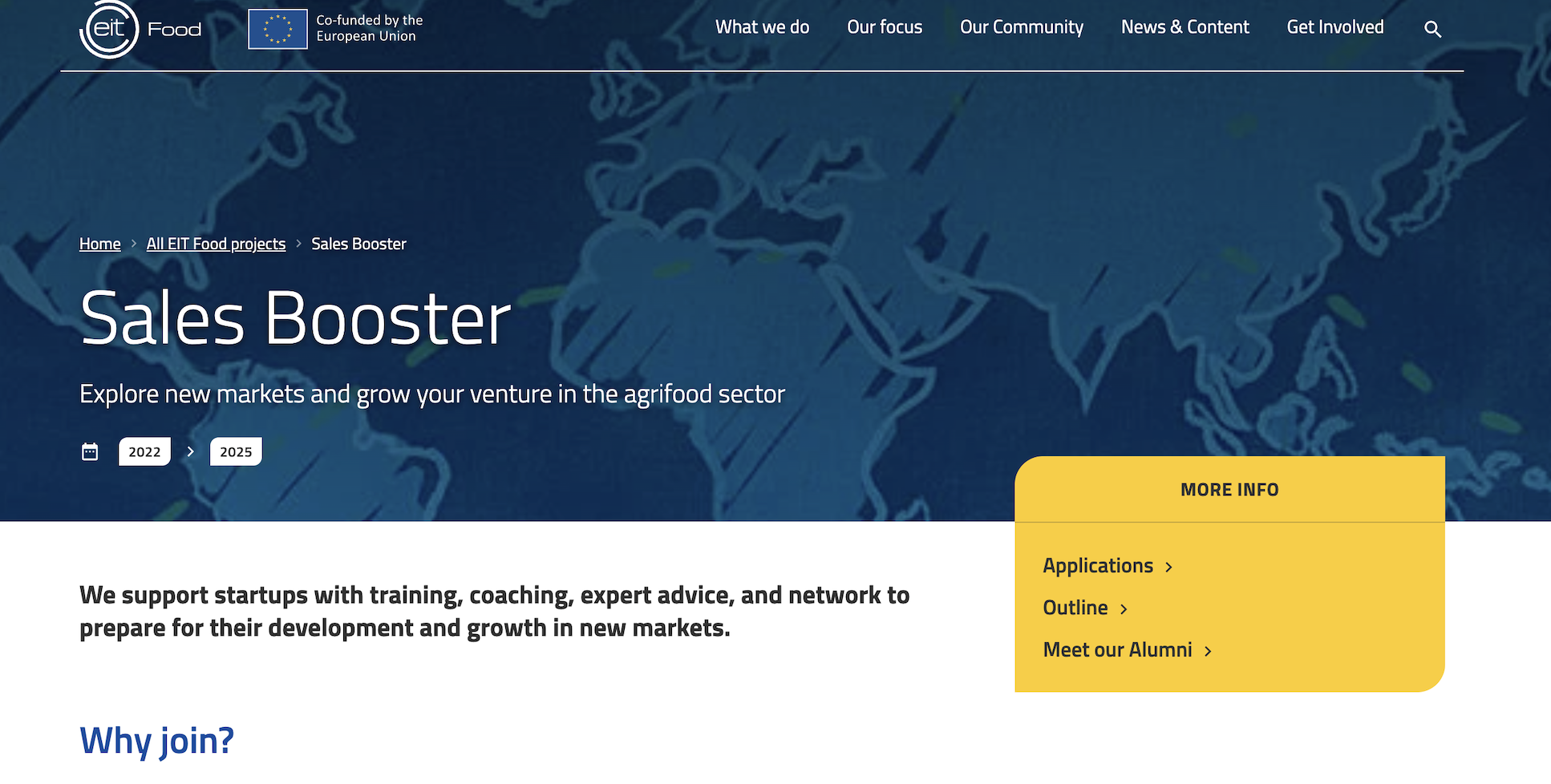 The Sales Booster 2025 program by EIT Food is designed to support innovative agrifood startups that have established themselves in local markets and are seeking to expand into new European markets, offering tailored guidance, expert resources, and a structured approach to developing an international action plan for successful market entry.