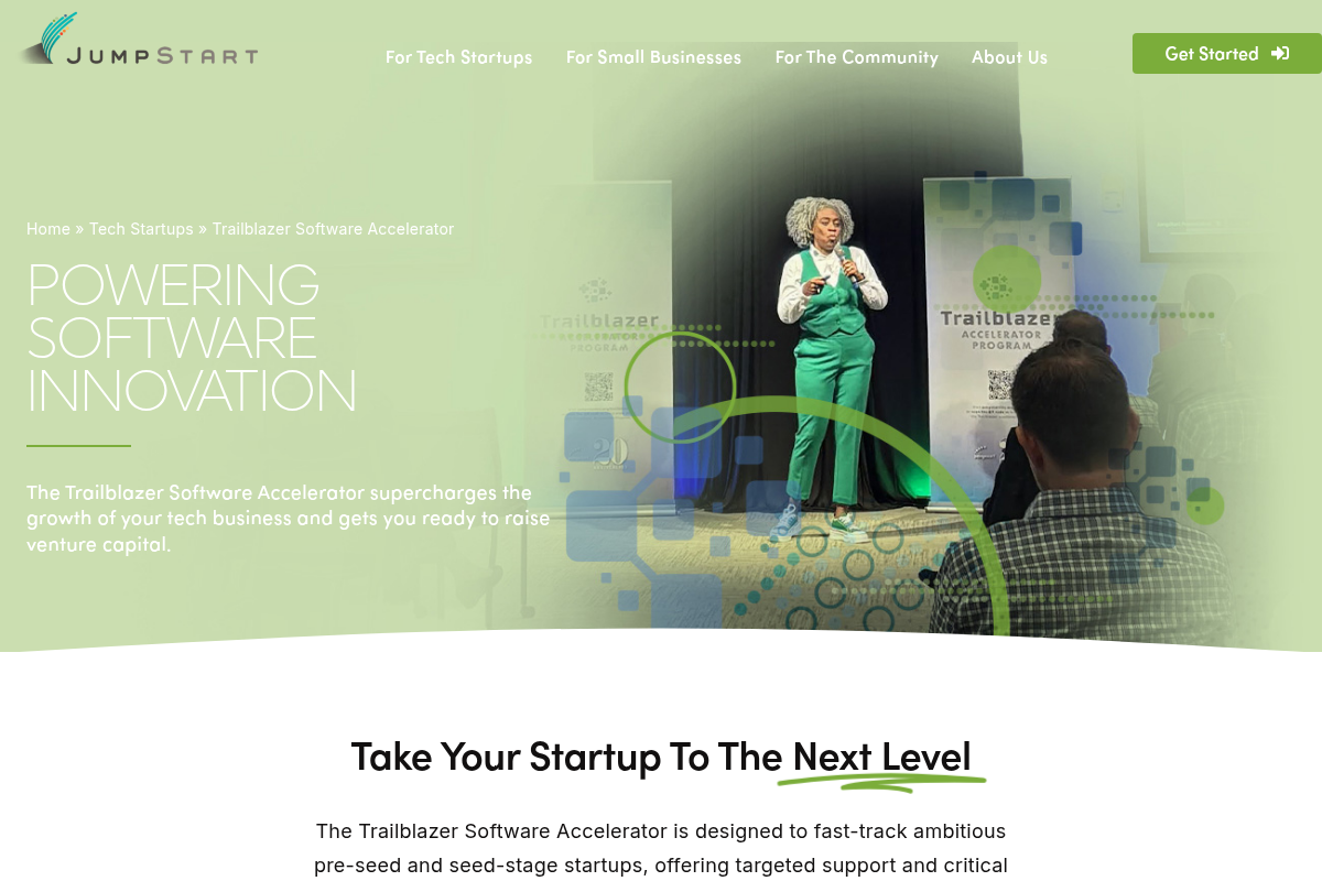 The Trailblazer Software Accelerator, hosted by JumpStart, is a three-month program designed for Pre-seed and Seed stage software startups in Ohio, offering up to $275,000 in non-dilutive funding, personalized mentorship from industry experts, and opportunities to pitch to investors, all aimed at accelerating growth and market validation.