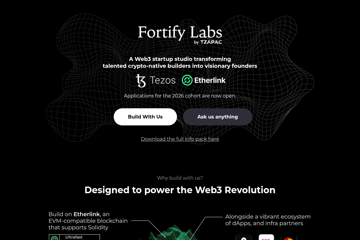 Fortify Labs, supported by TZ APAC, is an incubation program dedicated to nurturing Web3 startups built on Tezos and Etherlink, offering selected early and growth-stage projects up to $1.3 million in funding, over seven months of mentorship, personalized support, and access to ecosystem resources to help teams build impactful and sustainable projects in the Asian Web3 landscape.
