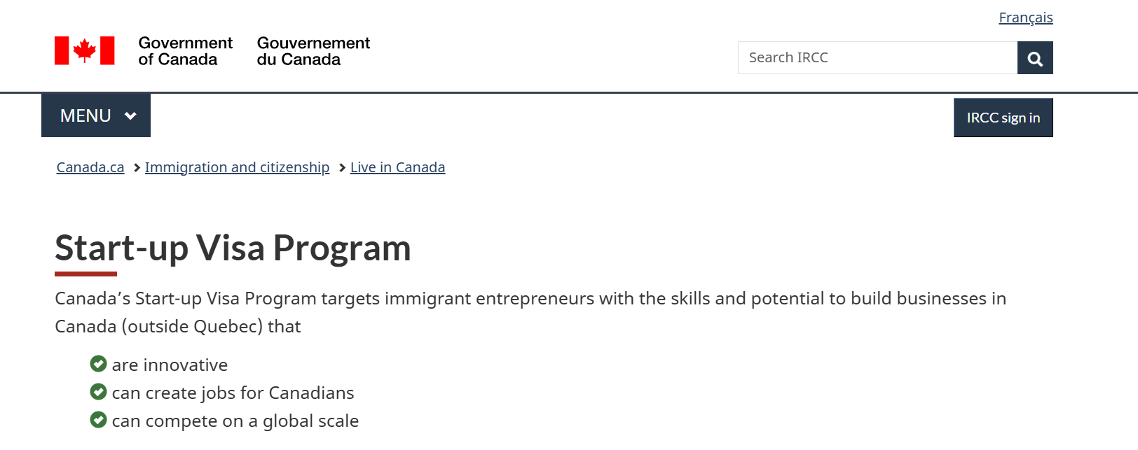 Canada Startup Visa Program