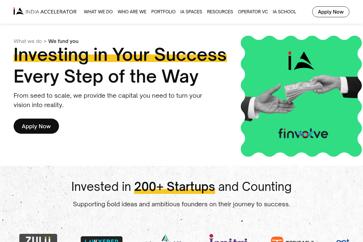 "We Fund You" is a multi-stage accelerator program by India Accelerator designed to support startups from seed to scale, offering funding, mentorship, and business optimization across various industries including robotics, drones, and AI, with a strong focus on market expansion and innovation.