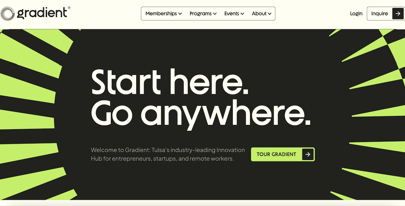The Gradient Innovation Hub is an incubator program in Tulsa, Oklahoma, designed to support startups in technology, health, and sustainability sectors by providing workspace, professional mentorship, funding opportunities, and collaboration resources, making it an ideal opportunity for entrepreneurs looking to grow their businesses.