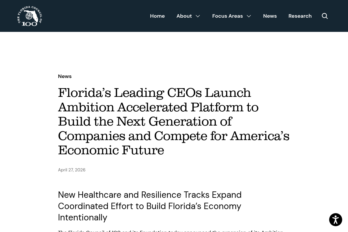 A new statewide accelerator program launching in fall 2026, designed to support startups in healthcare and resilience sectors by providing access to mentorship, funding, and a robust network of industry leaders and resources. Participants will benefit from tailored programming and direct connections to Florida's top employers, enabling them to scale their solutions effectively within the state.