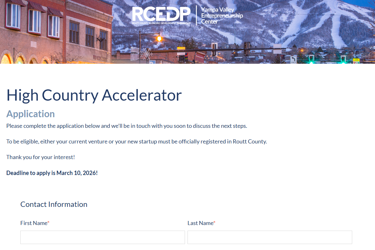 Open to startups registered in Routt County, Colorado