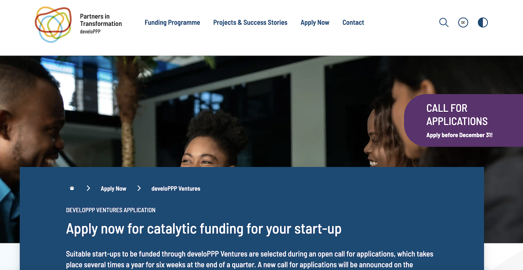 develoPPP Ventures offers funding of up to €100,000 for innovative early-stage startups in Africa that have scalable market solutions and contribute to social, economic, or environmental issues, providing mentorship and support for growth in emerging markets.