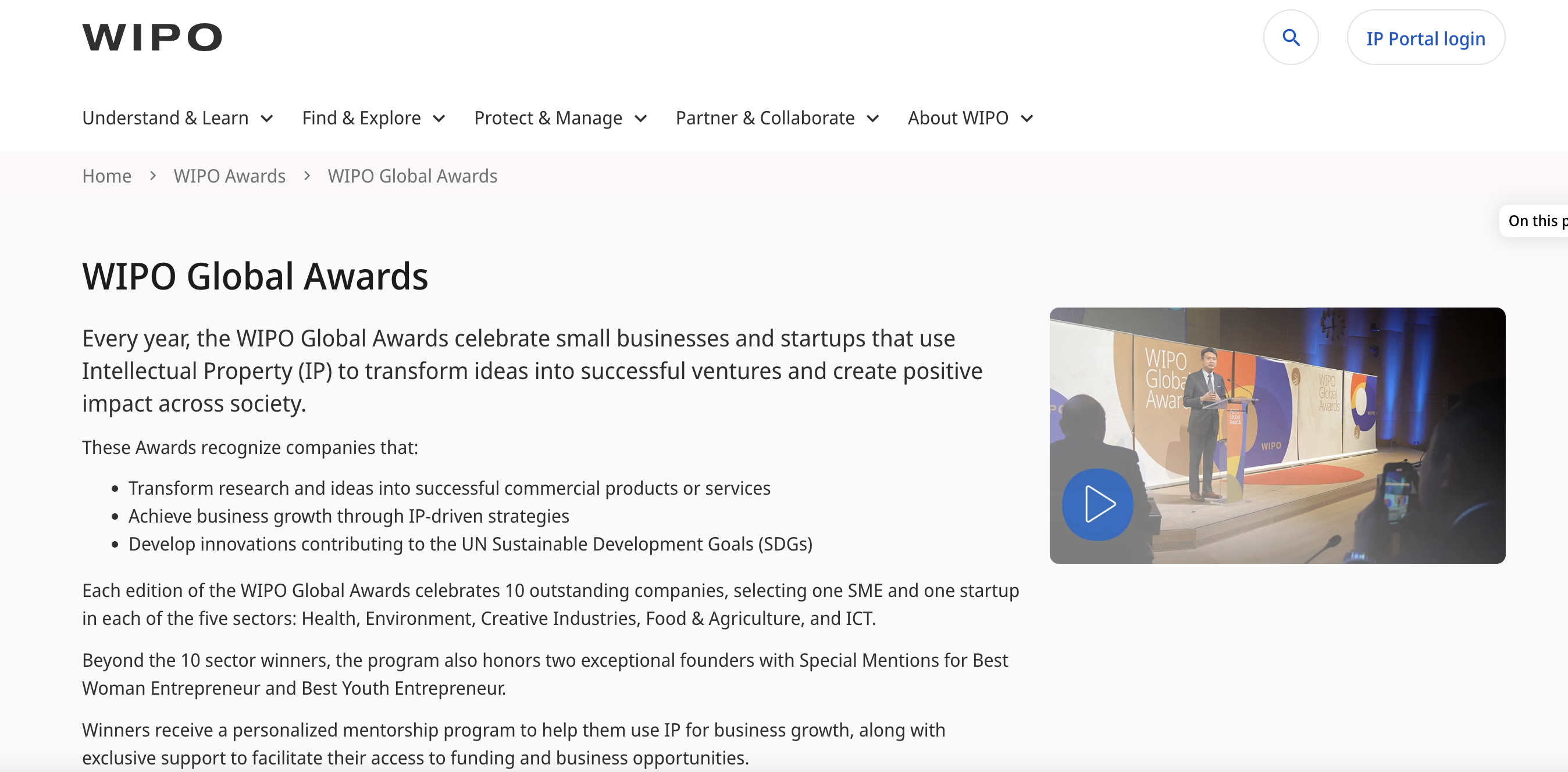 - Open to startups and SMEs from all 194 member countries of WIPO.