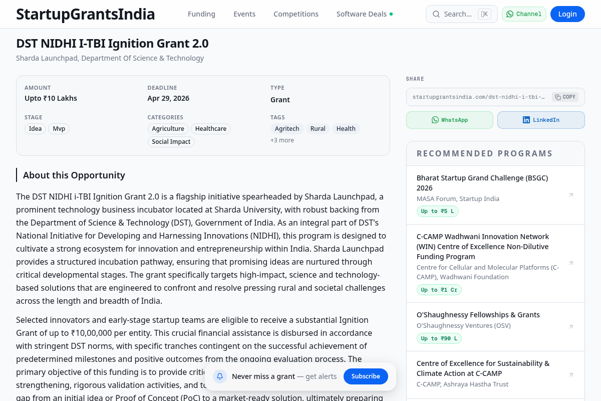 DST NIDHI i-TBI Ignition Grant 2.0