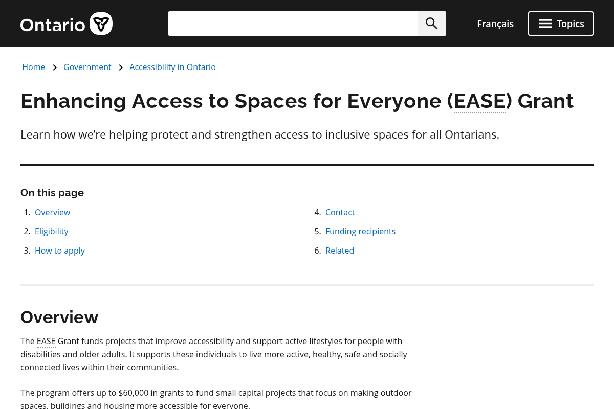 - ✅Priority ProjectsProjects that exceed the Accessibility for Ontarians with Disabilities Act, 2005 (AODA) and/or the Ontario Building Code are prioritized
