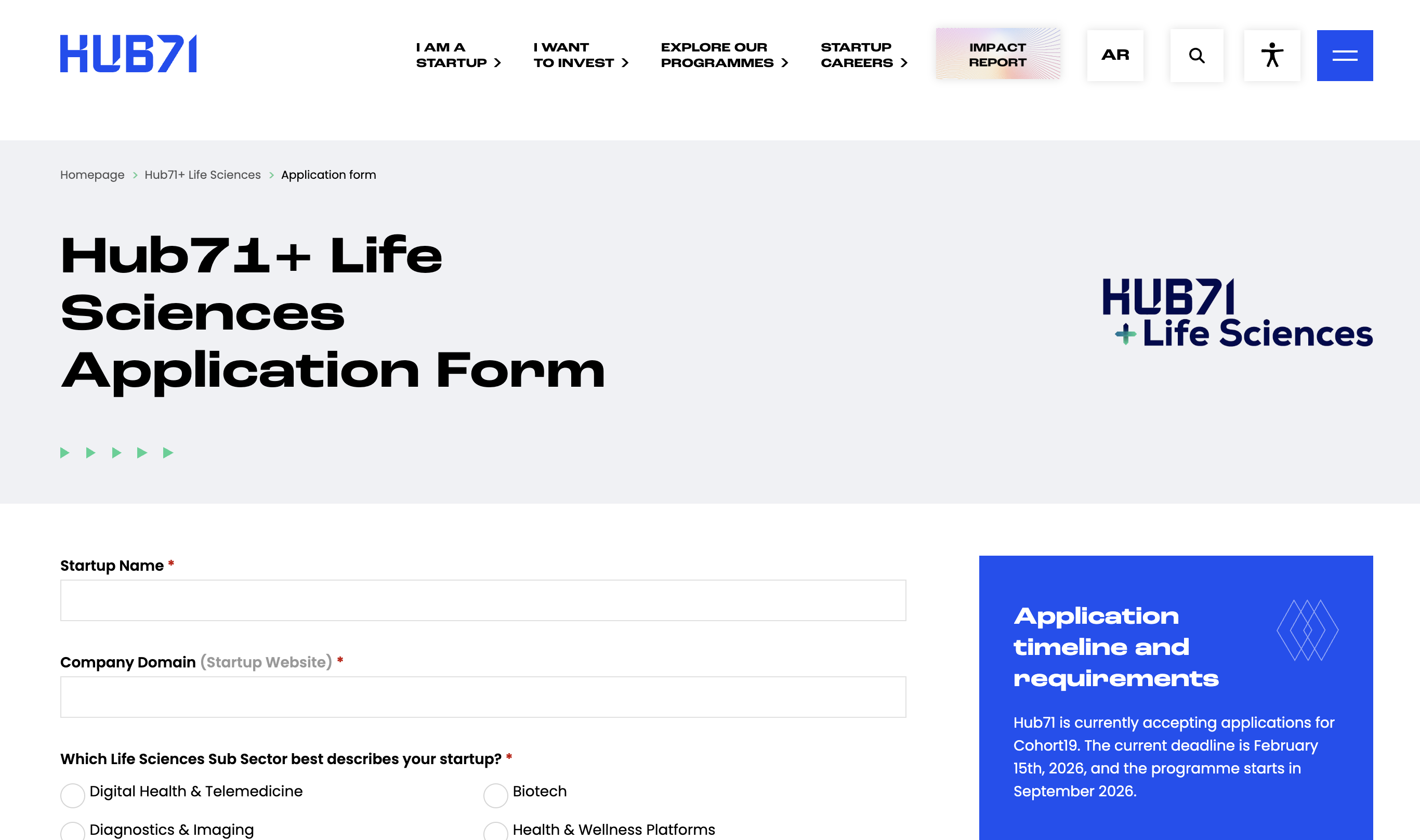 Hub71 is accepting applications for its Life Sciences Cohort 19, offering startups in the health tech and biotech sectors the chance to receive mentorship, funding opportunities, and office space in Abu Dhabi, starting in September 2026.