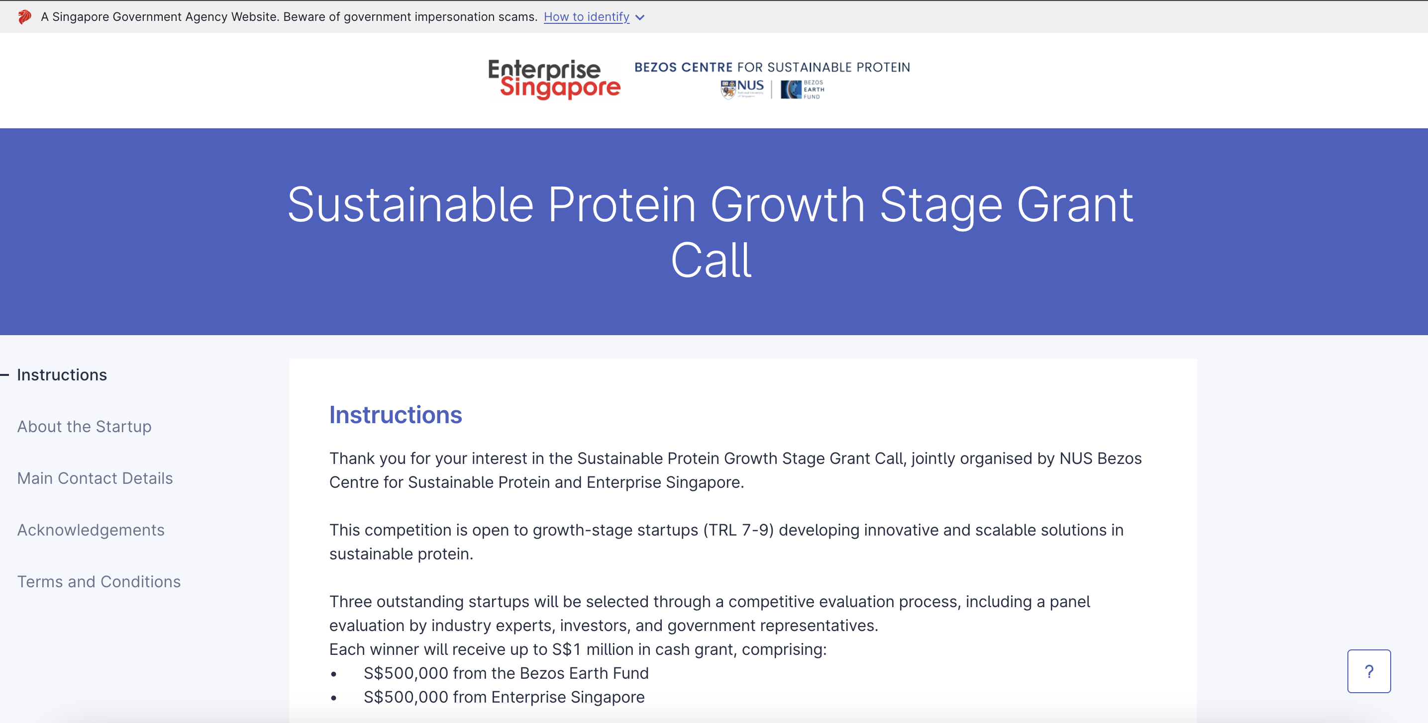 - Up to SGD 1 million in funding, disbursed in three phases based on milestones