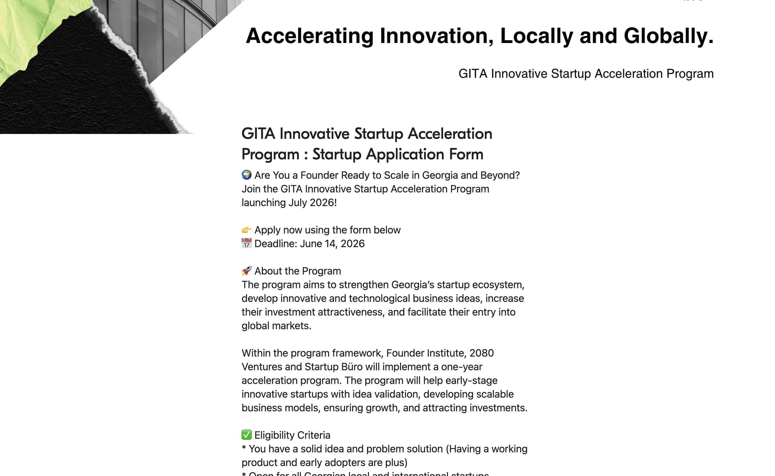 - Open for all Georgian and international startups