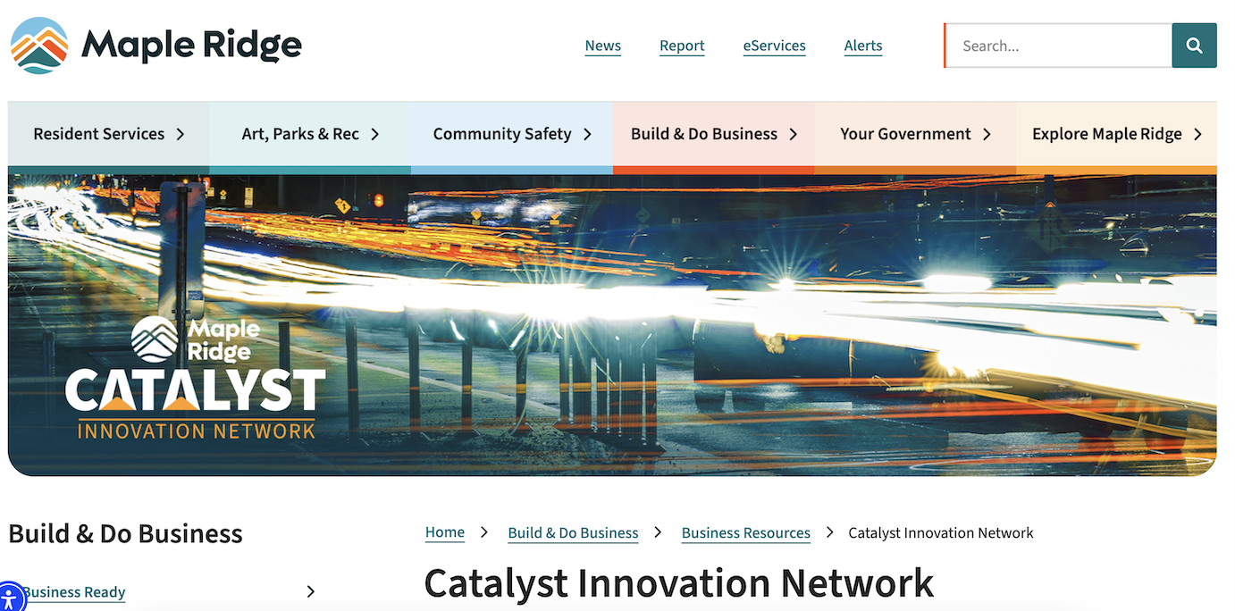 The Catalyst Innovation Network, initiated by the City of Maple Ridge, is a long-term initiative designed to support entrepreneurship and innovation, providing a platform for learning, networking, and collaboration among entrepreneurs, tech companies, educators, and community organizations to drive economic growth in the region.