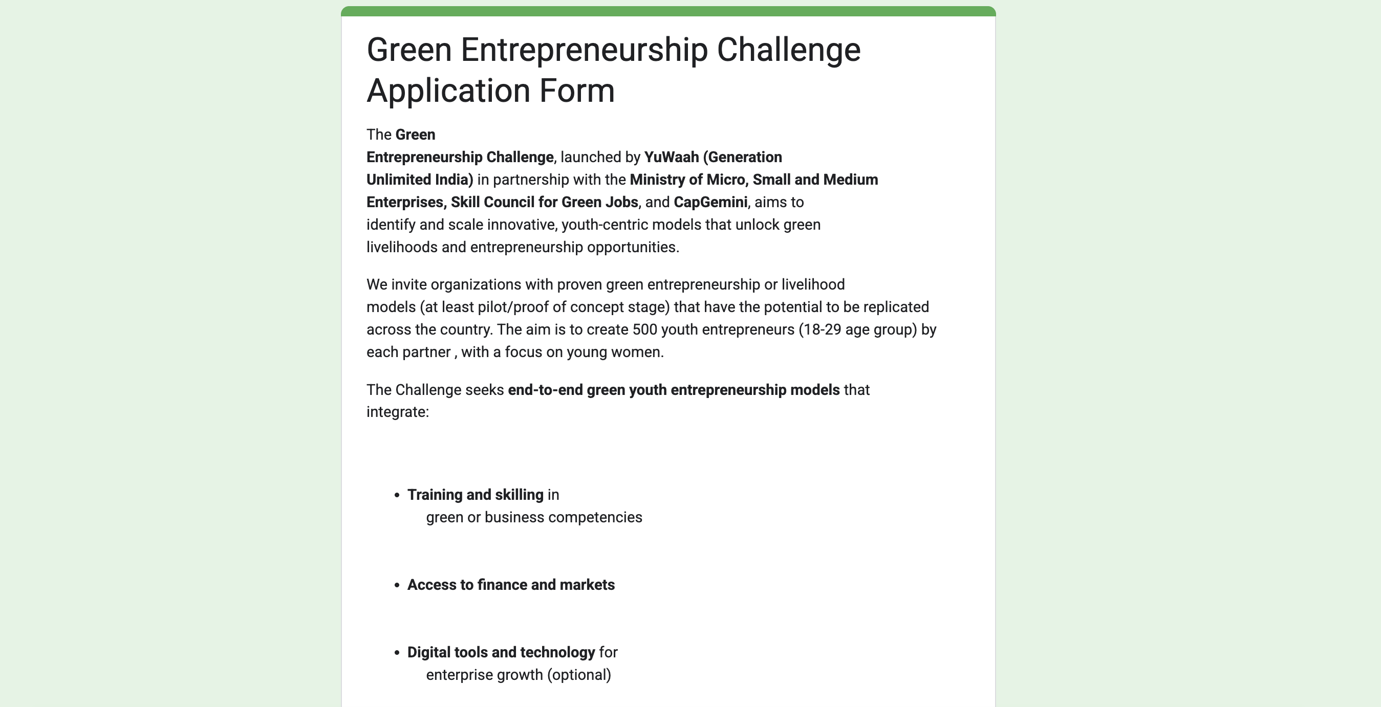 Green Entrepreneurship Challenge