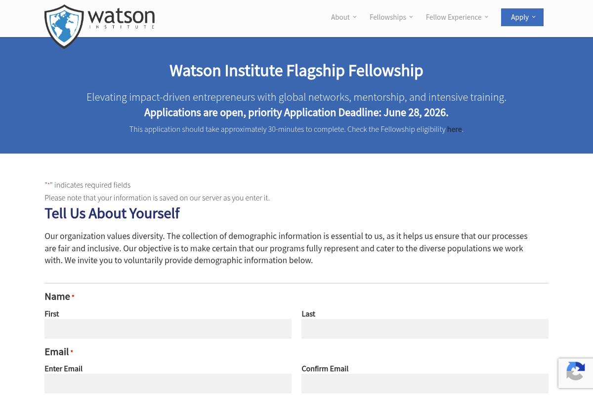A fully-funded 16-week fellowship program designed for impact-driven entrepreneurs, providing intensive training, mentorship, and access to a global network of investors and partners. Participants will engage in workshops focused on business and leadership skills, receive pitch training, and culminate their experience with a virtual summit to showcase their ventures.