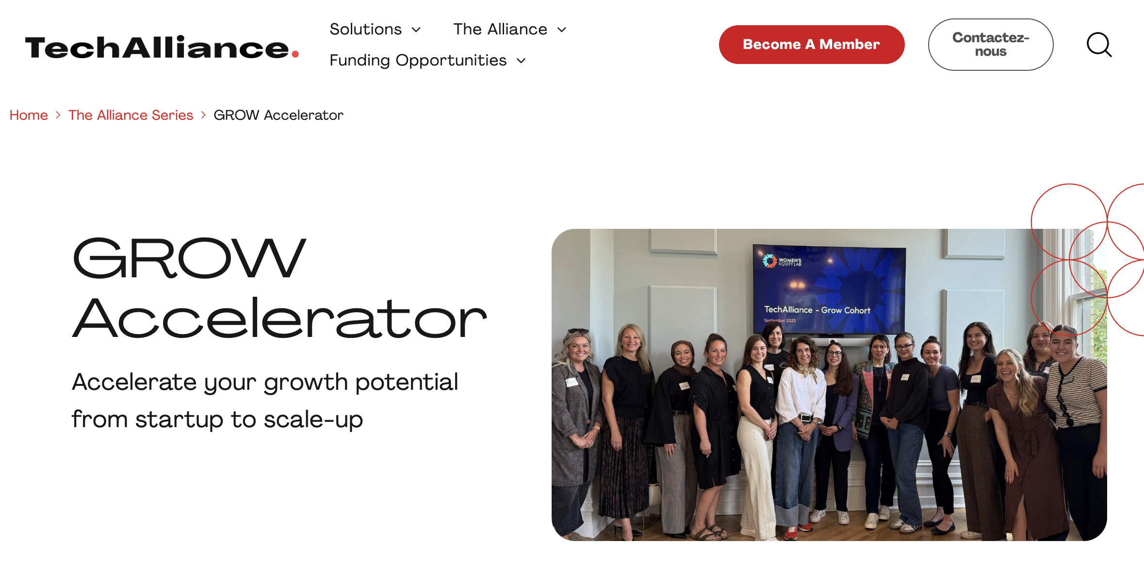 The GROW Accelerator program, organized by TechAlliance of Southwestern Ontario, offers early-stage startups in the region a 6-month acceleration experience, providing CAD 10,000 in matching federal funding, expert mentorship, and networking opportunities to enhance business growth and market competitiveness.