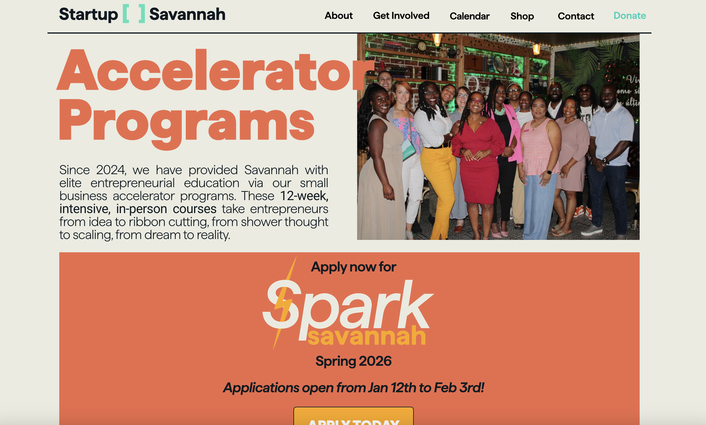 The SPARK Savannah Spring 2026 Accelerator Program is a free 12-week program designed for early-stage entrepreneurs with a business idea or a business operating for less than three years, offering essential skills, mentorship, and networking opportunities to help them grow and succeed in the local business ecosystem.